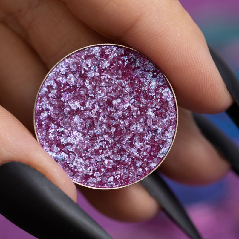 Cień prasowany o delikatnej masłowej konsystencji, łatwy w aplikacji. Po rozprowadzeniu tworzy jednolitą taflę z delikatnymi drobinkami. Ma jasny metaliczny niebieski kolor, który przechodzi w różowy, co dodaje makijażowi unikalności i wielowymiarowości. Produkt nie wymaga bazy, co czyni go jeszcze bardziej wygodnym w użyciu.