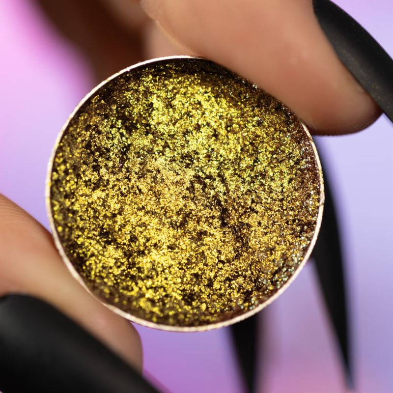 Pigment o intensywnym metalicznym połysku, delikatnej masłowej konsystencji, łatwy w aplikacji. Po rozprowadzeniu tworzy jednolitą taflę z subtelnymi drobinkami. Ma delikatny limonkowy kolor ze złotym wykończeniem. Głębi koloru dodaje beżowa baza kolorystyczna pigmentu. Całość sprawia, że makijaż wygląda luksusowo i z blaskiem. Produkt nie wymaga bazy, co czyni go jeszcze bardziej wygodnym w użyciu. Może być stosowany zarówno jako cień do powiek, jak i eyeliner.