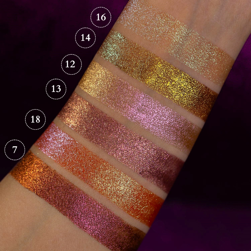 Zastosowanie: Pigment CZTERNASTKA jest wszechstronny i można go używać na wiele różnych sposobów. Nakładając go na całą powiekę, uzyskasz intensywny, metaliczny efekt, który przyciąga wzrok. Delikatne wklepanie pigmentu w środek powieki doda blasku i podkreśli spojrzenie. Doskonale sprawdza się również jako akcent w kącikach oczu lub na łuku brwiowym. Jego trwała formuła zapewnia, że makijaż utrzymuje się przez cały dzień.