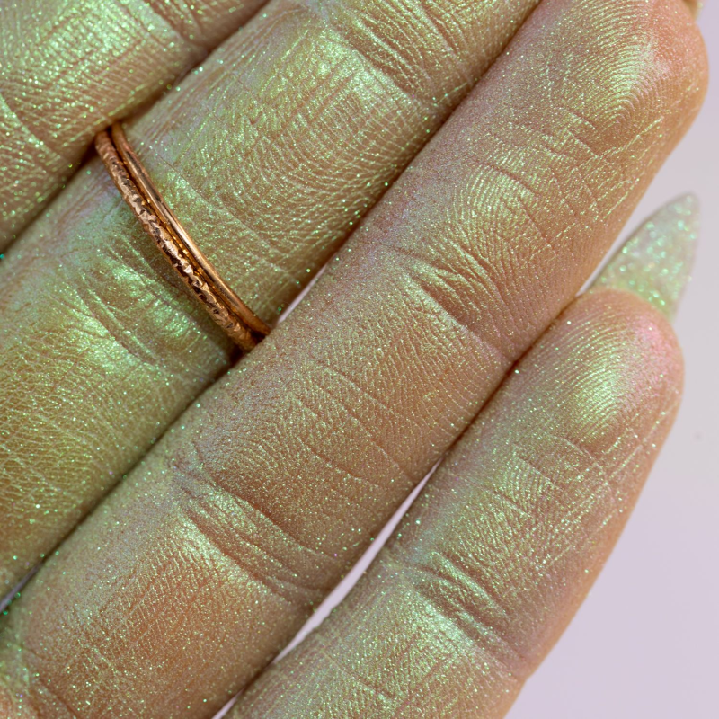 Irys to pigment z serii kameleony o lekkim pudrowym wykończeniu. Po przez zastosowanie specjalnych składników absorbuje i odbija światło w taki sposób, że kolory się zmieniają kiedy patrzymy na pigment pod różnym katem. Pigment Irys po rozblendowaniu mieni się fioletowymi i niebieskimi drobinkami, dlatego nasz letni kolor jest tak unikatowy. Jego struktura, kolorystyka pozwala na tworzenie indywidualnych i oryginały looków, które przyciągną uwagę i dodadzą pewności siebie. Odcień zieleni nadaje makijażowi świeżości i energii. Nakładając pigment puszystym pędzelkiem możesz go zastosować jako toper lub rozświetlacz na twarz i ciało. Albo aplikując na bazę stosować jako cień do powiek, wówczas uzyskasz jednolitą pięknie lśniącą taflę. Produkt wegański, nie testowany na zwierzętach, bezpieczny dla zdrowia.