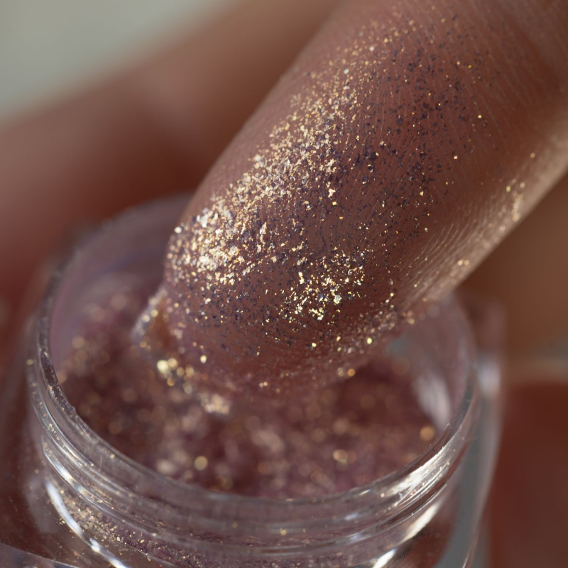 Odkryj wyjątkowy pigment sypki w formie delikatnego różowo-złotego pyłku z subtelnym wykończeniem fioletu. Ten unikalny produkt ożywi Twoje spojrzenie, dodając mu niezwykłego blasku.