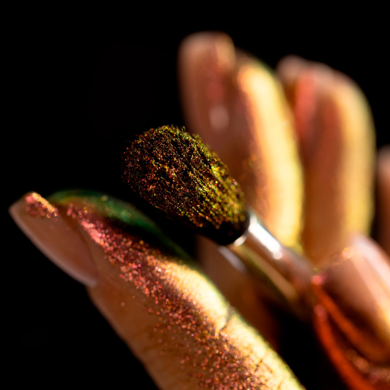 Odkryj Pigment KAPŁANKA z serii multichrom od Malumag Cosmetics – klucz do stworzenia makijażu, który emanuje tajemniczością i ciepłymi odcieniami. Ten niezwykły pigment łączy w sobie bogactwo miedzi, głębię stonowanego brązu i subtelne przebłyski pomarańczowego, tworząc na Twojej skórze efekt pełen magii i nieodgadnionej głębi.