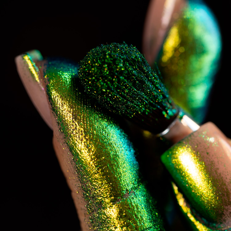 Pigment NIMFA z serii multichrom od Malumag Cosmetics to zaproszenie do świata, gdzie makijaż staje się ekspresją natury. Odkryj głębię soczystego zielonego, który w magiczny sposób przechodzi w iskrzącą limonkę, tworząc na Twojej skórze efekt pełen życia i świeżości.