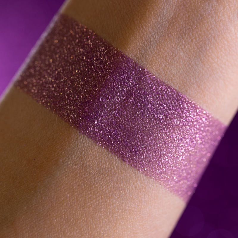 Pigment o metalicznym połysku, delikatnej masłowej konsystencji, łatwy w aplikacji. Po rozprowadzeniu tworzy jednolitą taflę z delikatnymi drobinkami. Ma jasny fioletowy kolor, który mieni się różowymi i srebrnymi drobinkami, dodając makijażowi elegancji i wyrafinowania. Produkt nie wymaga bazy, co czyni go jeszcze bardziej wygodnym w użyciu. Może być stosowany zarówno jako cień do powiek, jak i eyeliner.