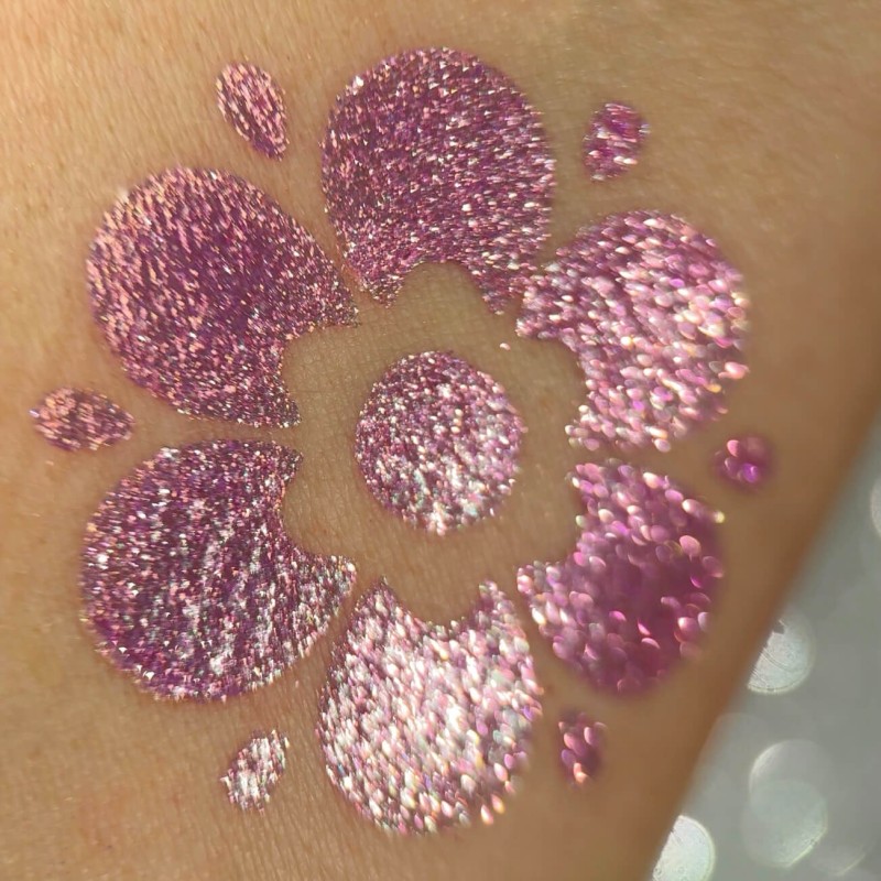 Cechy produktu: Kolor: Ciepły różowo-złoty Drobinki: Złote Zastosowanie: Makijaż oczu i akcenty na twarzy Efekt: Subtelny, połyskujący